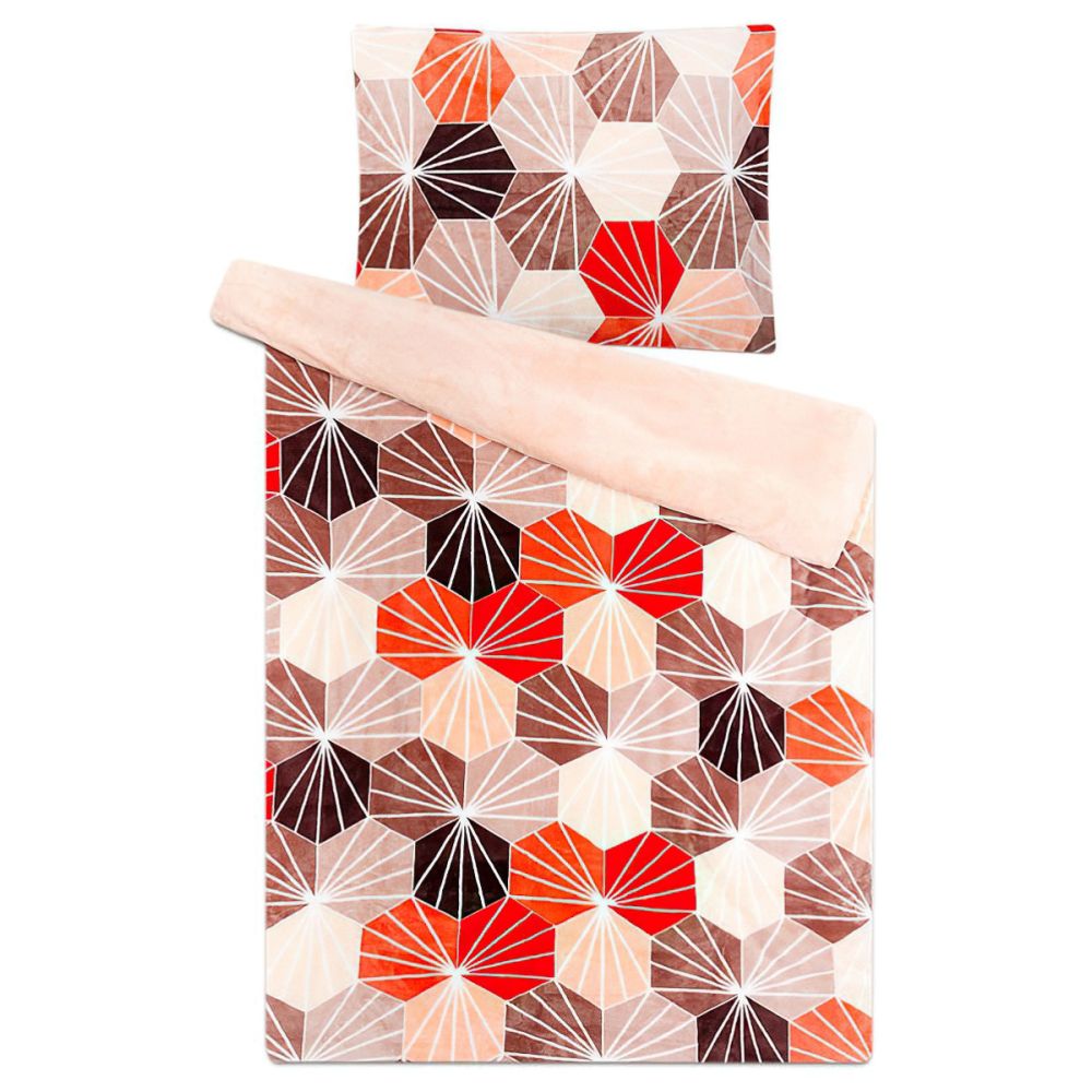 Povlečení KIKKO ČERVENÉ mikroflanel, červeno-hnědá mozaika, 140x200cm + 70x90cm