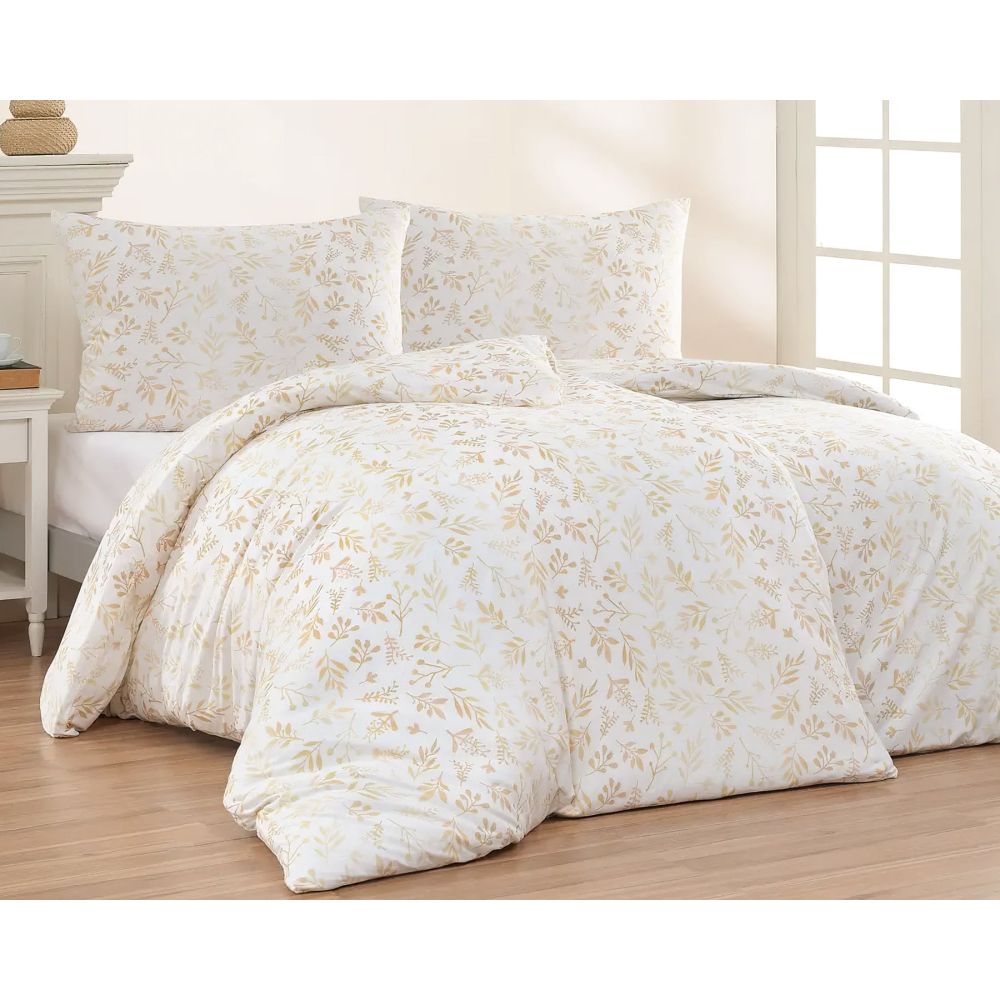 Povlečení Matějovský LUNETTE, drobné béžové lístky, mako jersey, 140x200cm + 70x90cm