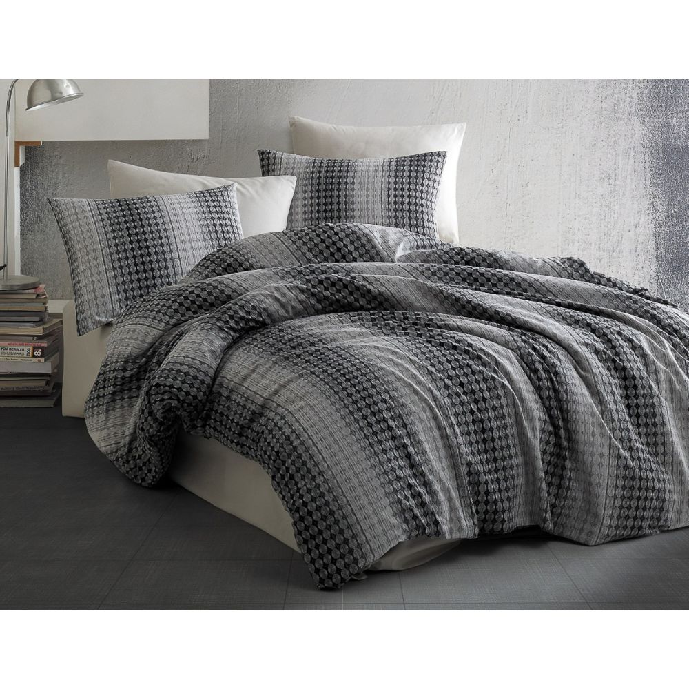 Bavlněné povlečení za dostupnou cenu se vzorem puntíků ve svislých proužcích v šedých odstínech. Povlak na přikrývku i polštář je oboustranný a z obou stran stejný. Souprava je vyrobena ze 100% bavlny a obsahuje jeden povlak na přikrývku 140 x 200 cm a jeden povlak na polštář 70 x 90 cm. Zapínání na zip.