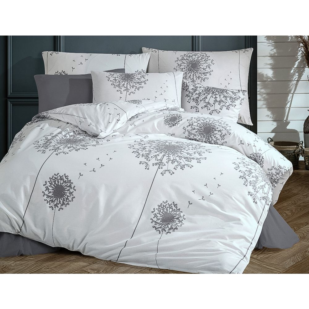 Bavlněné povlečení za dostupnou cenu se vzorem šedých odkvetlých květů pampelišek na bílém podkladu. Povlak na přikrývku má vzor z obou stran stejný. Povlak na polštář má stejný vzor. Souprava je vyrobena ze 100% bavlny a obsahuje jeden povlak na přikrývku 140 x 200 cm a jeden povlak na polštář 70 x 90 cm. Zapínání na zip.