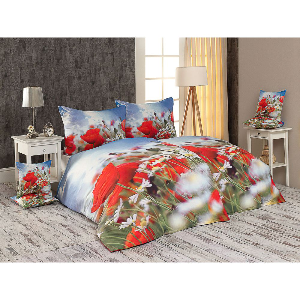 Povlečení Matějovský POPPY, vlčí máky na zeleno-modré, bavlněný satén digitál, 140x200cm + 70x90cm