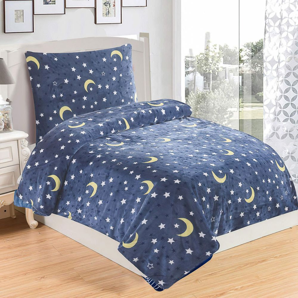 Povlečení UNIVERSE mikroflanel, (vesmír) noční nebe, modrá, 140x200cm + 70x90cm