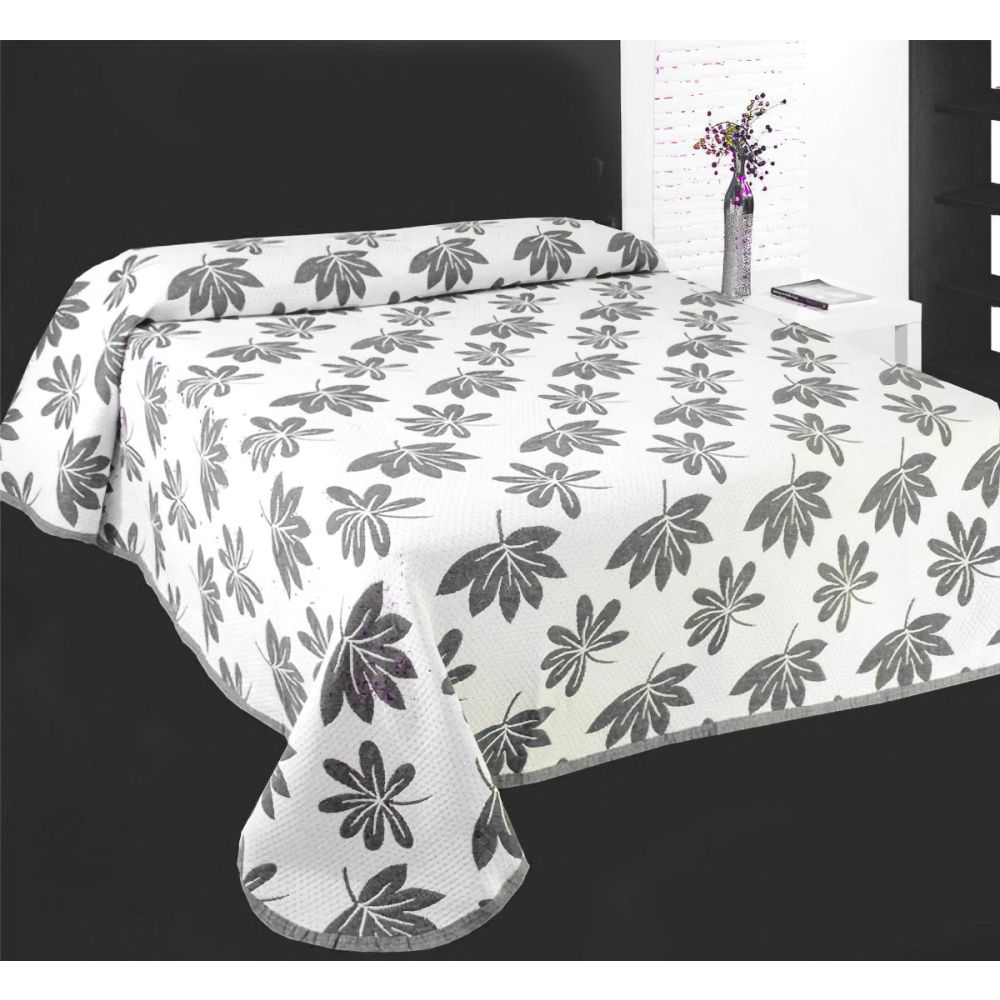 Přehoz na postel EVA šedo-bílý s listy (více rozměrů)