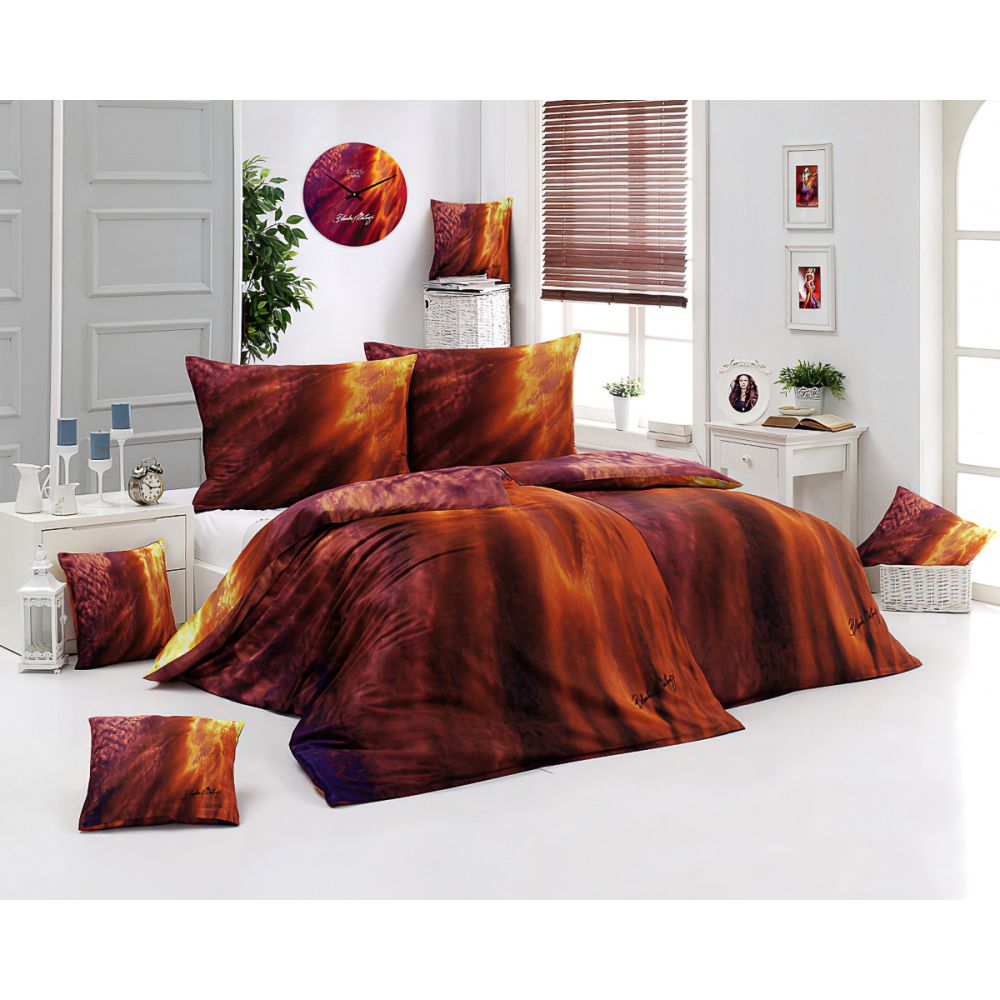 Sada 2 ks povlečení BLANKA MATRAGI - FIRE, oranžovo-hnědý oheň, bavlněný MAKO satén, digitál, 140x200cm + 70x90cm