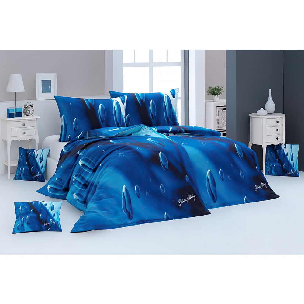 Sada 2 ks povlečení BLANKA MATRAGI - RAIN, modré motivy deště, bavlněný MAKO satén, digitál, 140x200cm + 70x90cm