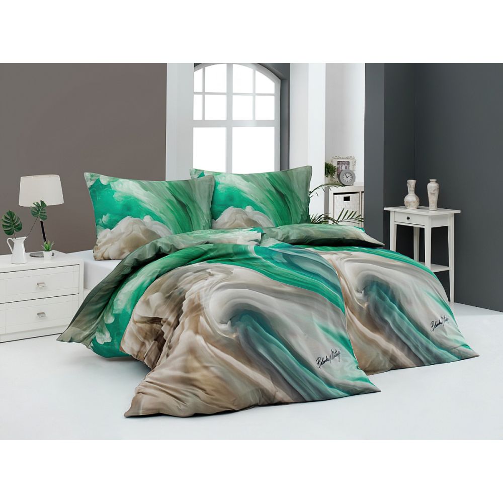 Sada 2 ks povlečení BLANKA MATRAGI - TIDE, zeleno-béžové motivy, bavlněný MAKO satén, digitál, 140x200cm + 70x90cm