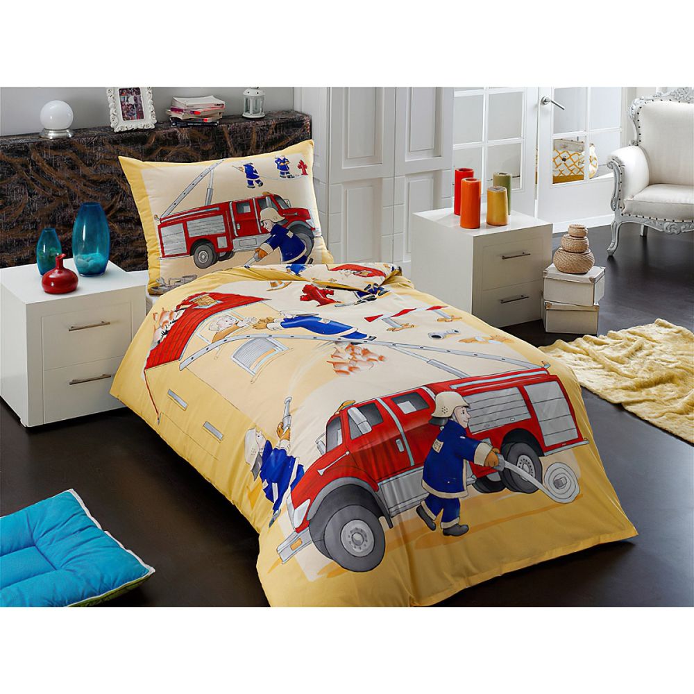 Dětské povlečení Matějovský do postýlky POŽÁRNÍCI (hasiči), žluté, bavlna hladká (více rozměrů)