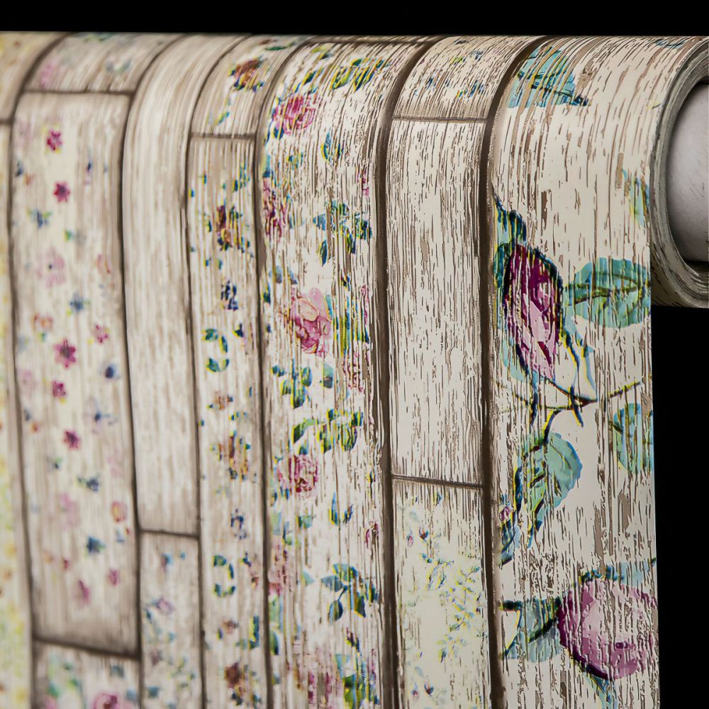 Omyvatelná PVC ubrusovina s podkladem z netkané textilie s motivem dřeva s květinovým vzorem s hladkým povrchem. Ubrus je dostupný v metráži o šířce 140cm.