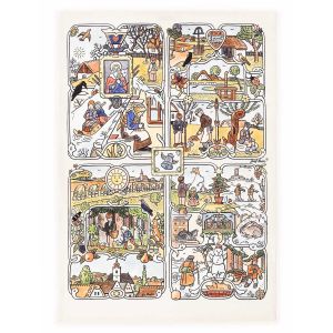 Bavlněné utěrky s kresleným vzorem v typickém ladovském stylu. Utěrky jsou v zeleném provedení podkladu v rozměru 50x70cm. Utěrky mají jednostranný vzor pohody na vsi a jsou vyrobeny ze 100% bavlny. Utěrky jsou v dárkovém balení po 2 kusech, 1x vzor maminky, která čte dětem, 1x vzor návsi.
