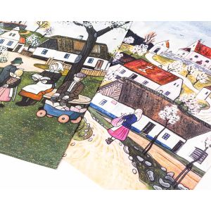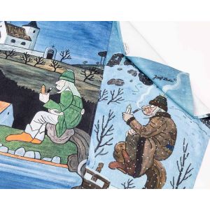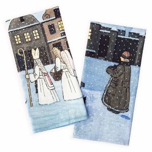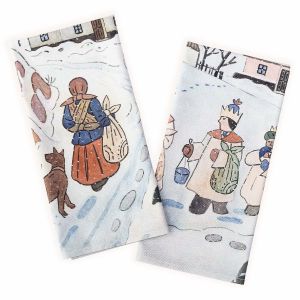 Bavlněné utěrky s kresleným vzorem v typickém ladovském stylu. Utěrky jsou v modrém provedení podkladu v rozměru 50x70cm. Utěrky mají jednostranný vzor vánoční koledy a jsou vyrobeny ze 100% bavlny. Utěrky jsou v dárkovém balení po 2 kusech, 1x vzor u betlému, 1x vzor na koledě.